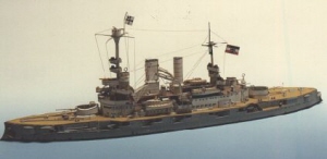 Battleship of the German WW II Navy with bow camouflage (not shown in the picture)