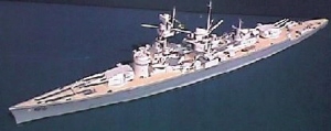 Battleship of the German WW II Navy with bow camouflage (not shown in the picture)